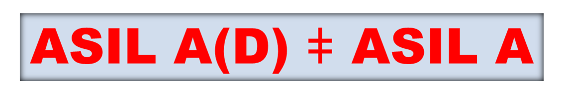 Es gilt immer zu berücksichtigen, dass zum Beispiel ein ASIL A(D) keinesfalls einem ASIL A entspricht. Das bedeutet: