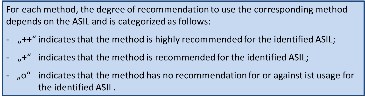 Aus diesen Tabellen können die entsprechenden Vorgehensweisen für die ASILs abgeleitet werden.